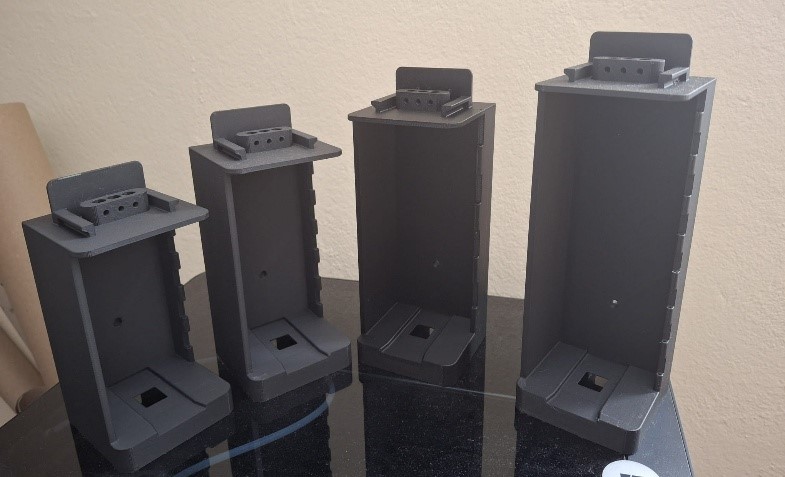 3. attēls: Testētās mikroskopa ģeometrijas (četri 3D drukāti prototipi).
