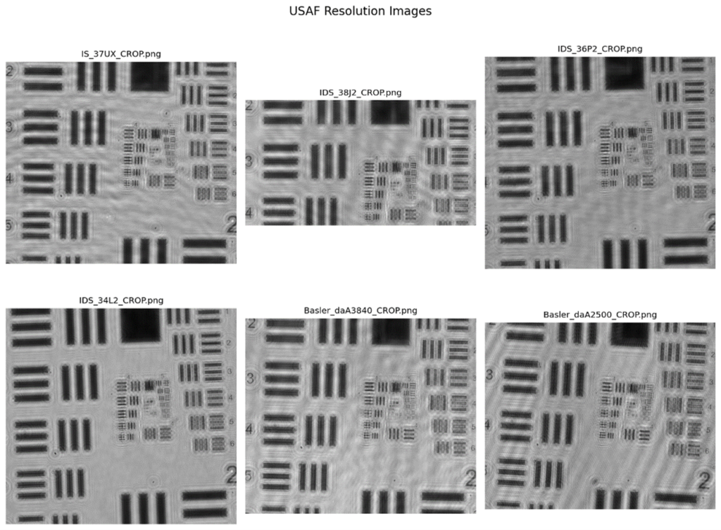 1. attēls. USAF 1951 attēli ar visām kamerām, kas tika izmantotas mūsu testā.