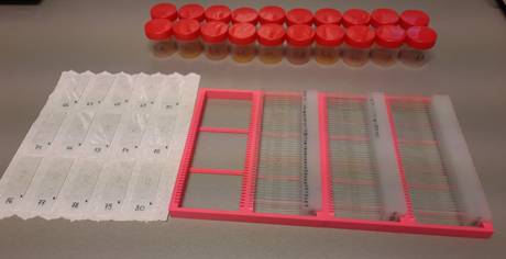 2. attēls: Otrās ziedputekšņu datubāzes daļas 150 mikroskopijas preparāti ar veterinārajai medicīnai nozīmīgākajiem ziedputekšņiem, kas paredzēti reālu apstākļu simulācijai klīniskajā diagnostikā.